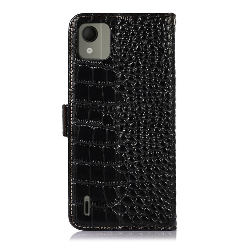 Θήκη τηλεφώνου από γνήσιο δέρμα αγελάδας, επάνω στρώση, για Nokia C110 Crocodile (Πράσινη)