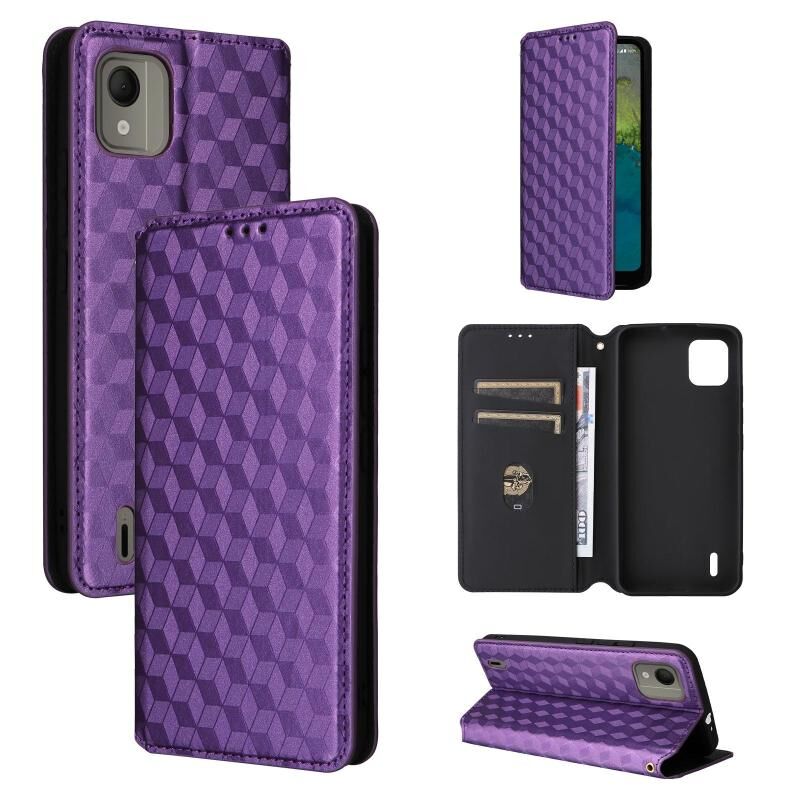 For Nokia C110 Cubic Grid Texture Flip Leather Phone Case(Purple)