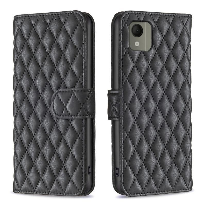 Για το Nokia C110 Diamond Lattice πορτοφόλι Flip δέρμα τηλέφωνο υπόθεση (Μαύρο)