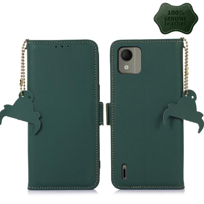 Θήκη τηλεφώνου από γνήσιο δέρμα με μαγνητικό κλείσιμο και προστασία RFID για Nokia C110 (Μπλε)