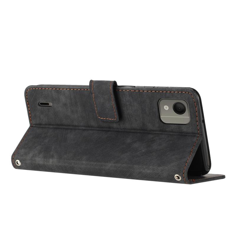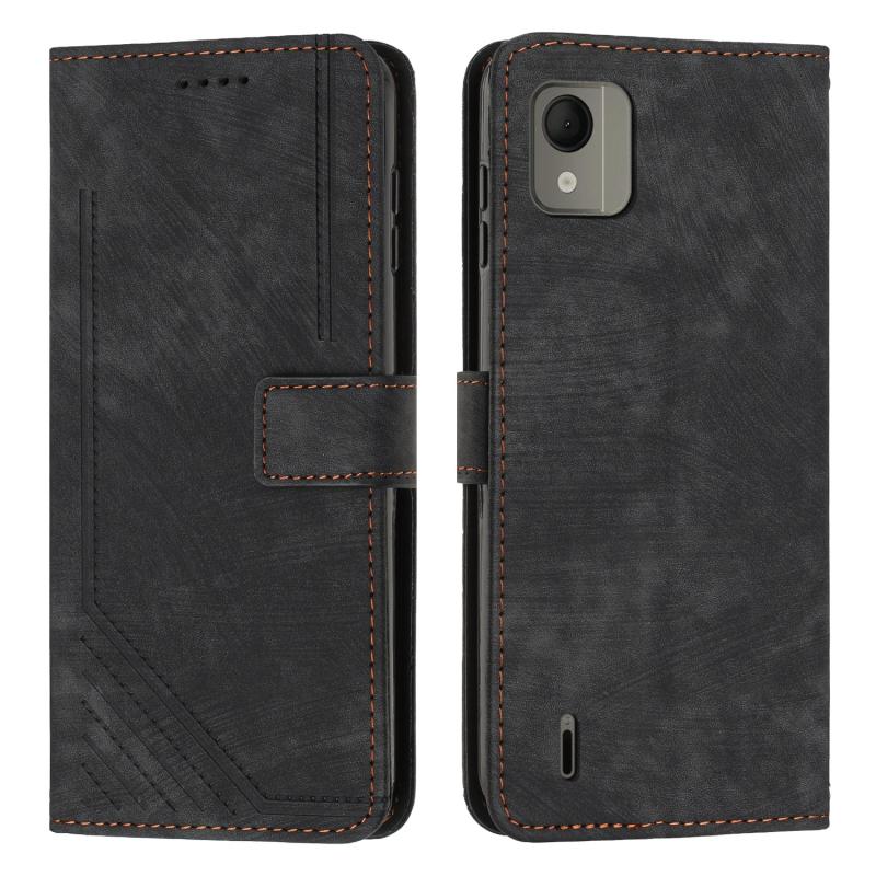 For Nokia C110 Skin Feel Stripe Pattern Leather Phone Case with Lanyard(Black)