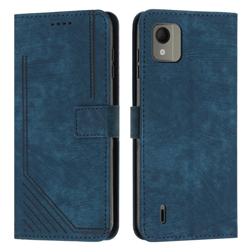 For Nokia C110 Skin Feel Stripe Pattern Leather Phone Case with Lanyard(Blue)