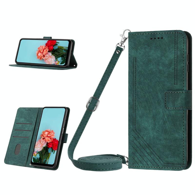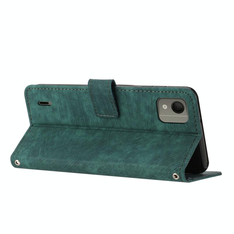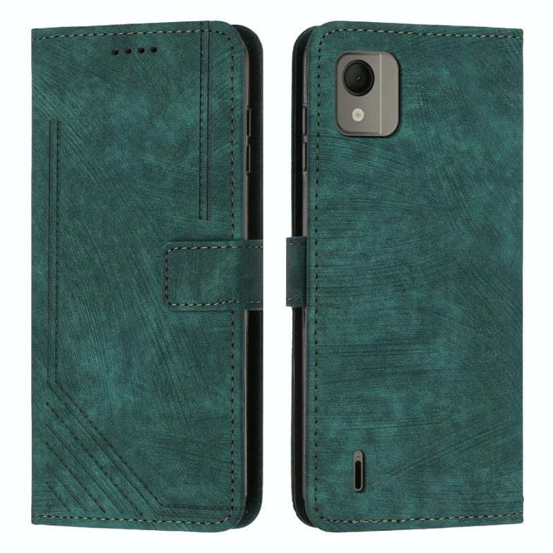 For Nokia C110 Skin Feel Stripe Pattern Leather Phone Case with Lanyard(Green)