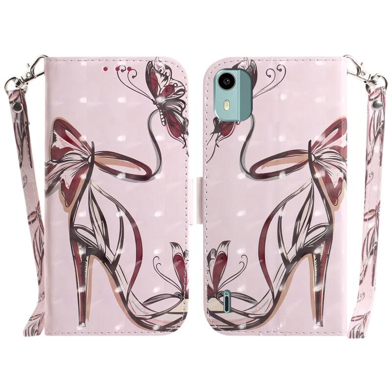 Θήκη τηλεφώνου δερμάτινη, οριζόντια, αναδιπλούμενη, με τρισδιάστατο έγχρωμο σχέδιο για Nokia C12 (πεταλούδα με ψηλοτάκουνα).
