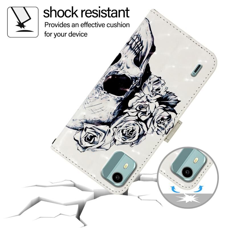 Θήκη τηλεφώνου από δέρμα με οριζόντια αναδίπλωση και τρισδιάστατη ζωγραφική για Nokia C12 (Κρανίο)