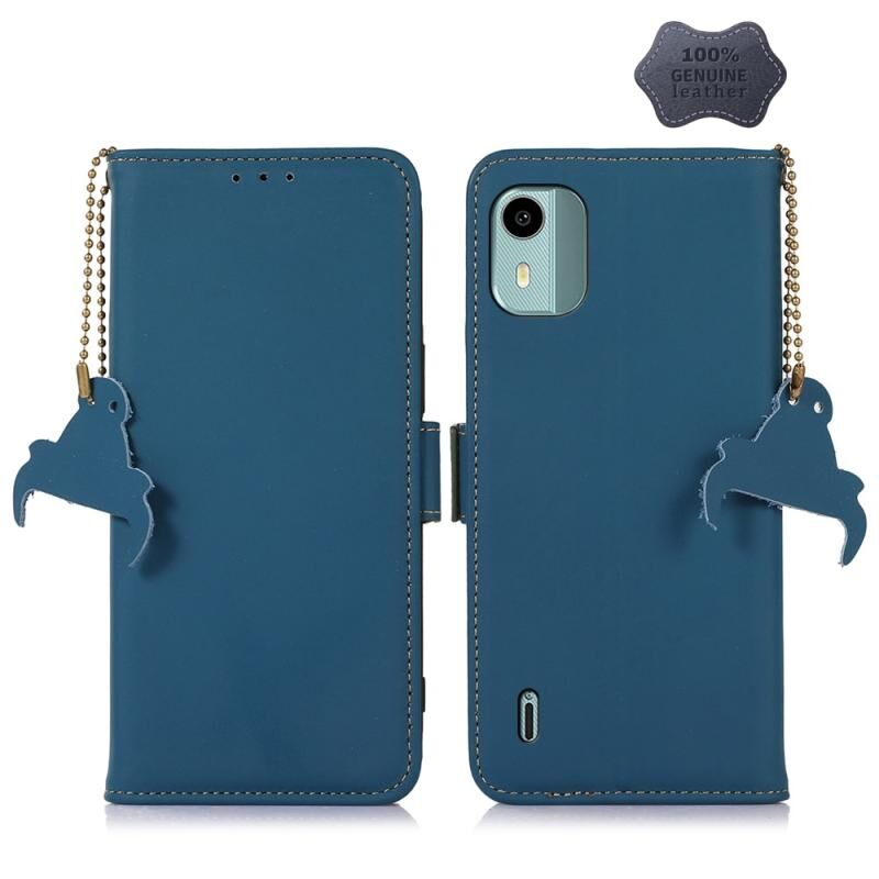 Θήκη τηλεφώνου από γνήσιο δέρμα με μαγνητικό κλείσιμο και προστασία RFID για Nokia C12 4G (Μπλε)