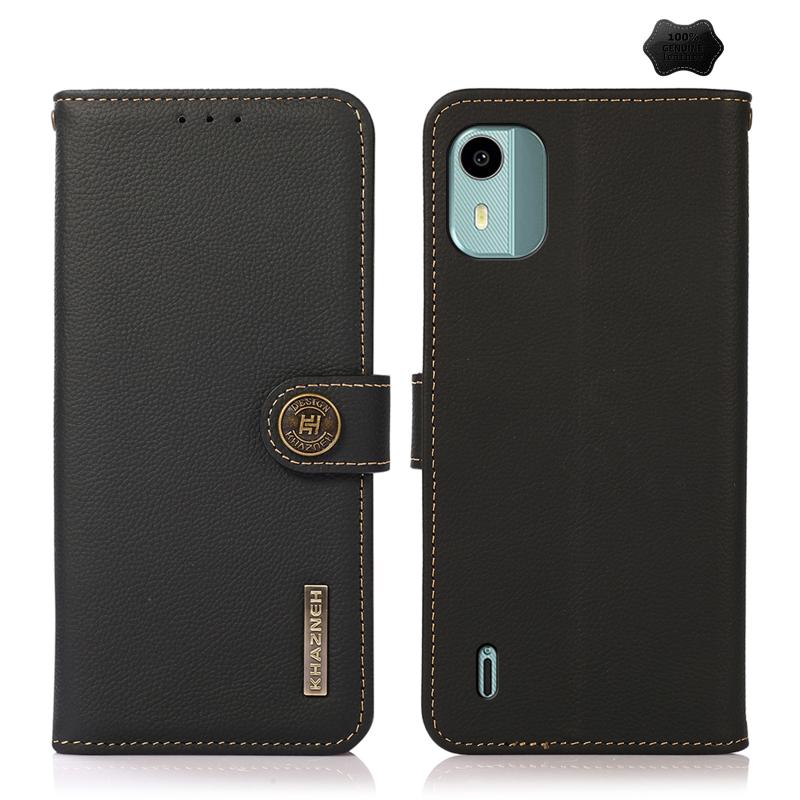 For Nokia C12 4G KHAZNEH Custer Genuine Leather RFID Phone Case(Black)