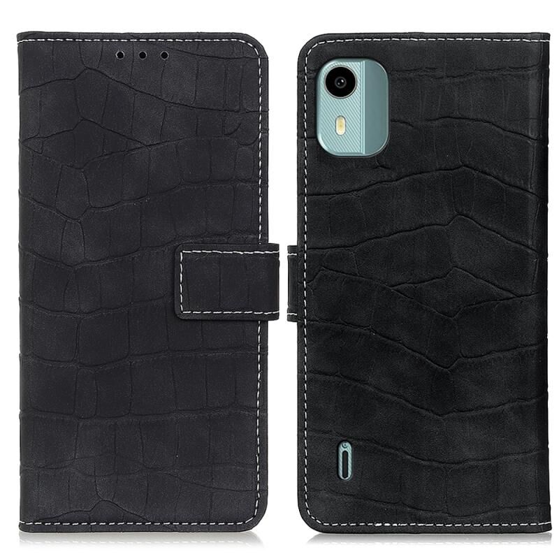 Θήκη τηλεφώνου από δέρμα με μαγνητική υφή κροκόδειλου για Nokia C12 4G (Μαύρο)