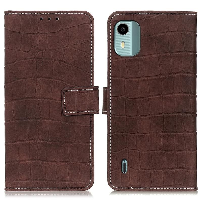 Θήκη τηλεφώνου από δέρμα με μαγνητική υφή κροκόδειλου για Nokia C12 4G (Μαύρο)