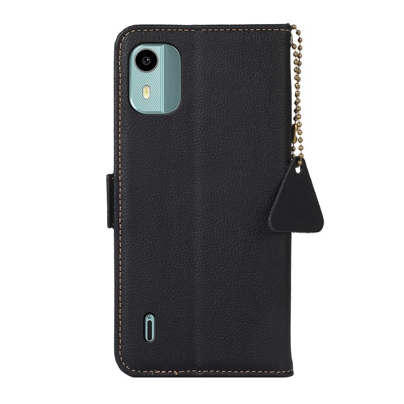 For Nokia C12 4G Side-Magnetic TJ Genuine Leather RFID Phone Case(Black)