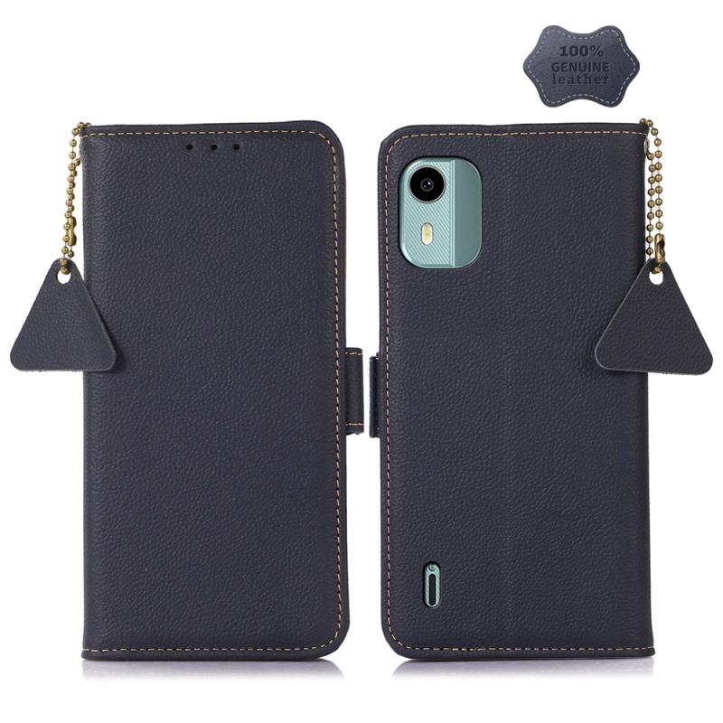 For Nokia C12 4G Side-Magnetic TJ Genuine Leather RFID Phone Case(Blue)