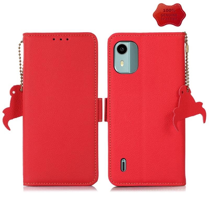 For Nokia C12 4G Side-Magnetic TJ Genuine Leather RFID Phone Case(Red)