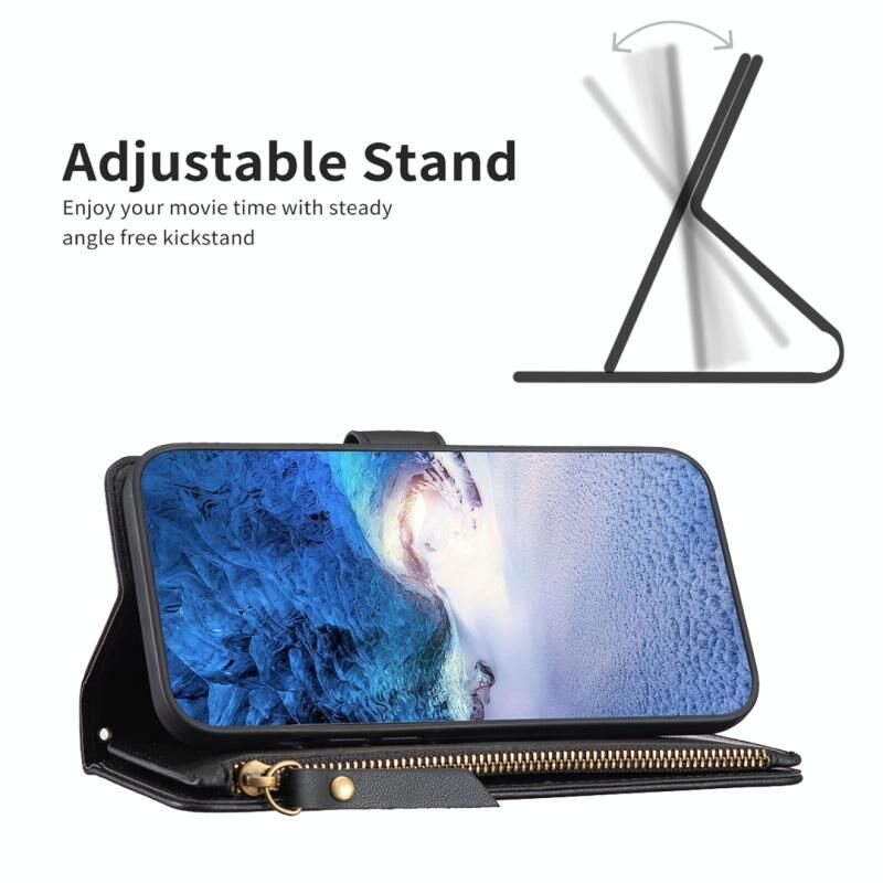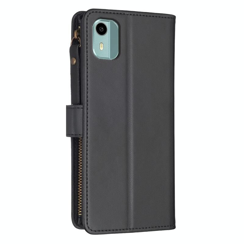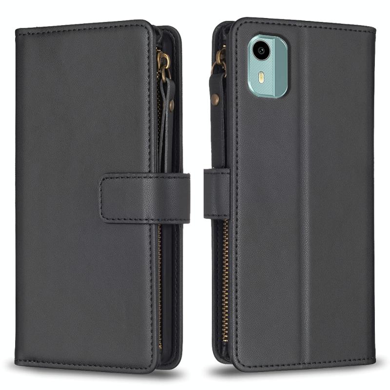 Θήκη τηλεφώνου τύπου flip από δέρμα με φερμουάρ και 9 θήκες καρτών για Nokia C12 (Μαύρο)