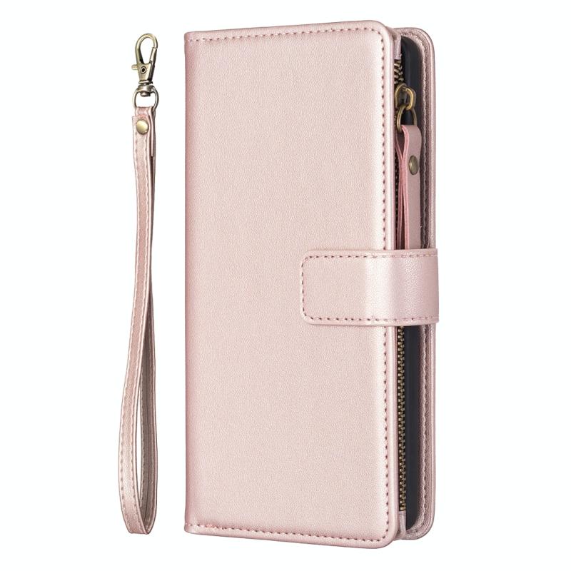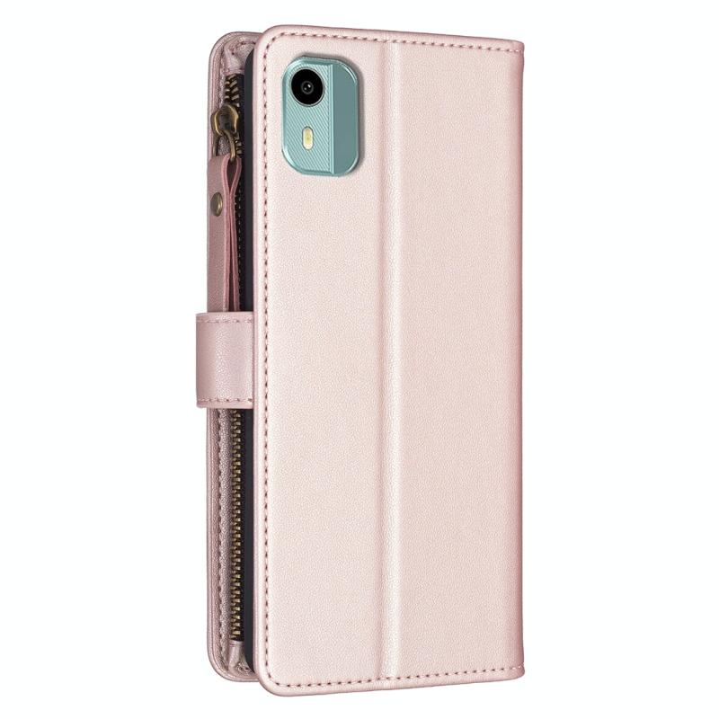 Θήκη τηλεφώνου τύπου flip από δέρμα με φερμουάρ και 9 θήκες καρτών για Nokia C12 (Ροζ χρυσός)