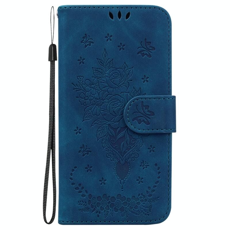 Για Nokia C12 Πεταλούδα Rose ανάγλυφο δέρμα υπόθεση τηλεφώνου (μπλε)
