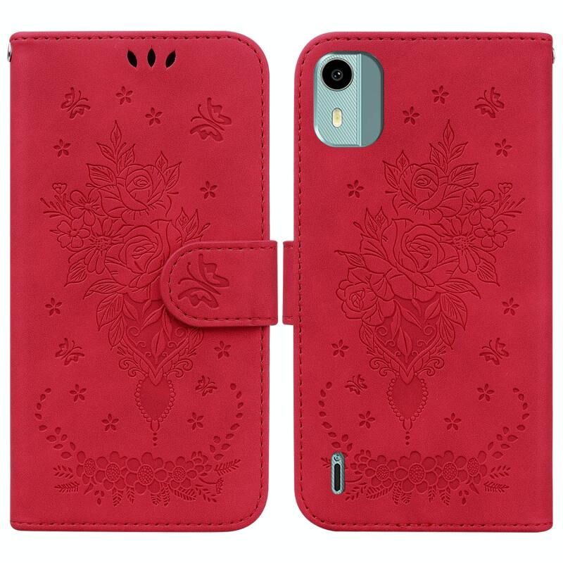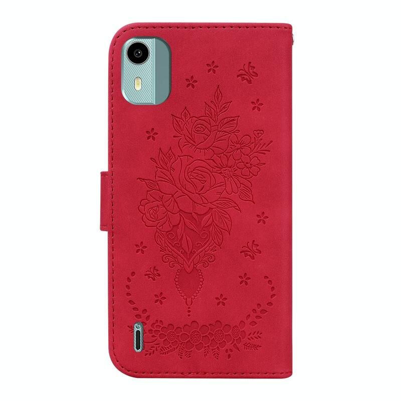 Για Nokia C12 Πεταλούδα Rose ανάγλυφο δέρμα υπόθεση τηλεφώνου (κόκκινο)