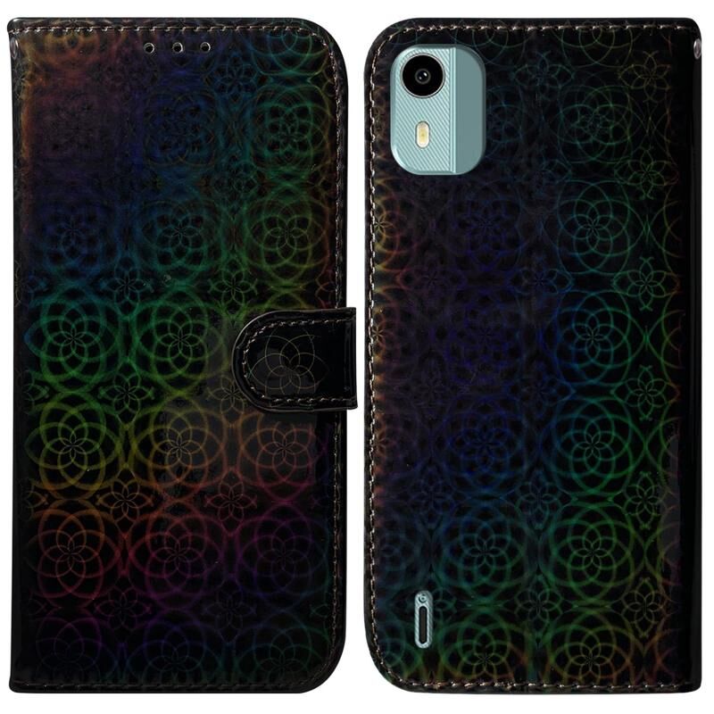 Για Nokia C12 Πολύχρωμο μαγνητική πόρπη δερμάτινη θήκη τηλεφώνου (μαύρο)
