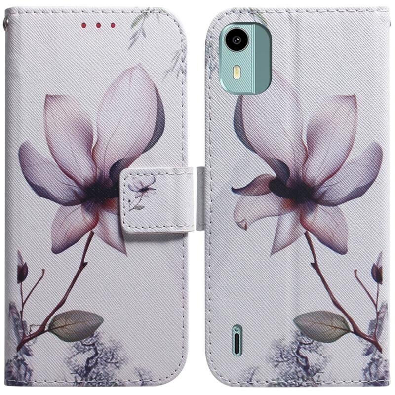 Θήκη τηλεφώνου από δέρμα με σχέδιο και αναδιπλούμενο καπάκι για Nokia C12 (Μαγνολία)