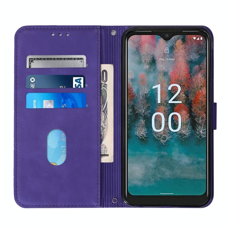 Για το Nokia C12 Crossbody 3D ανάγλυφο Flip δερμάτινη θήκη τηλεφώνου (μωβ)