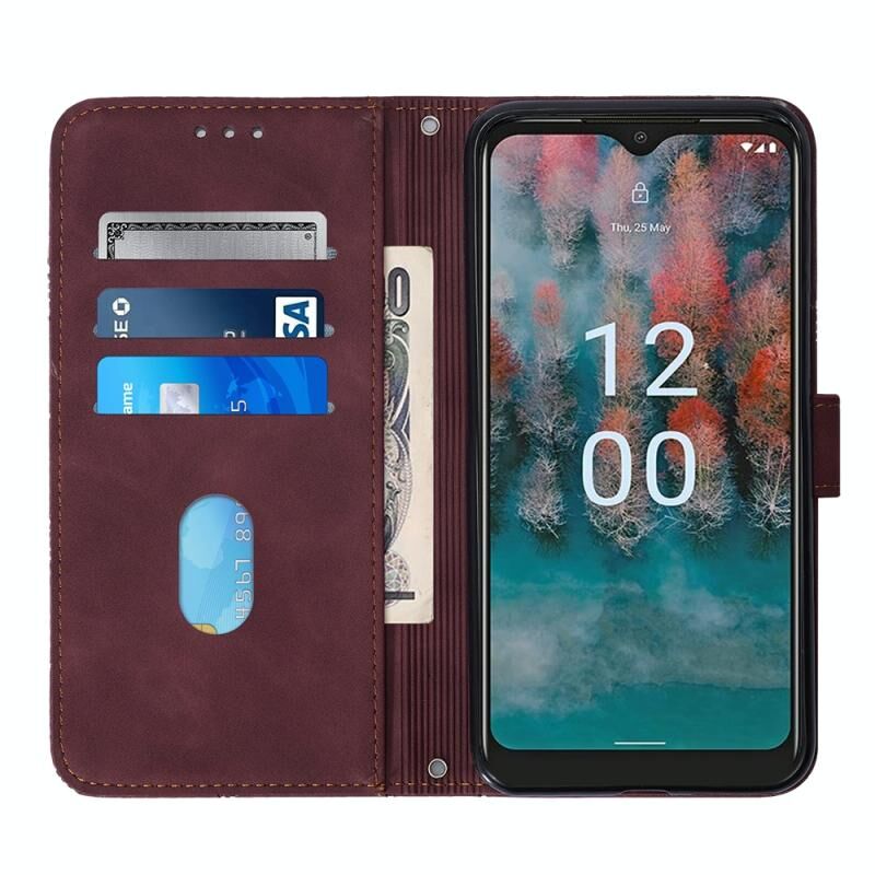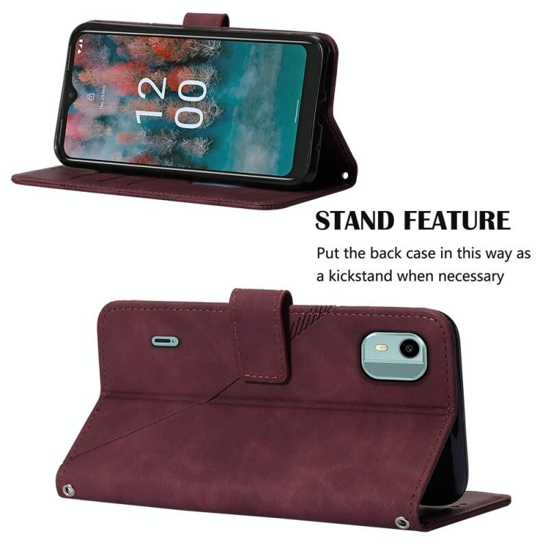 Για το Nokia C12 Crossbody 3D ανάγλυφο Flip δερμάτινη θήκη τηλεφώνου (κόκκινο κρασί)