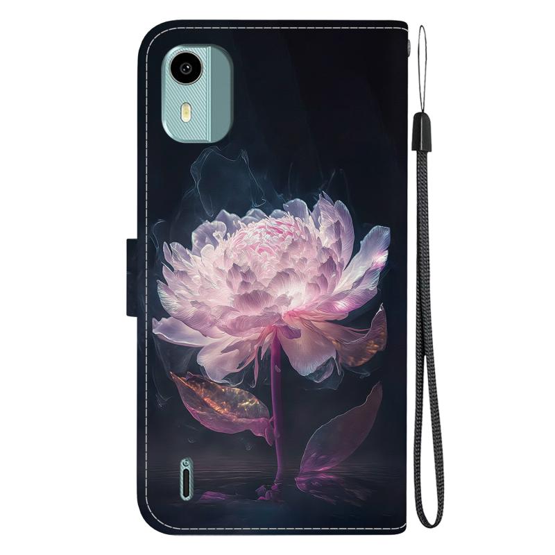 For Nokia C12 Crystal Texture Colored Drawing Leather Phone Case(Purple Peony)