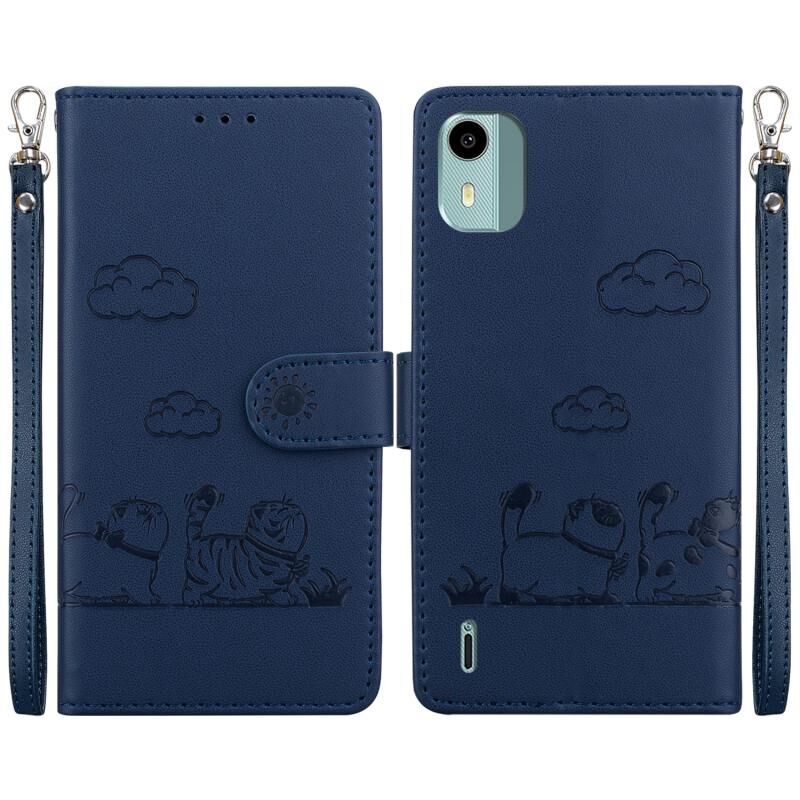 Θήκη τηλεφώνου από δέρμα RFID για Nokia C12, χαριτωμένες γάτες (Πράσινο)
