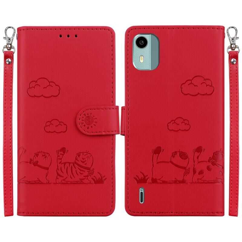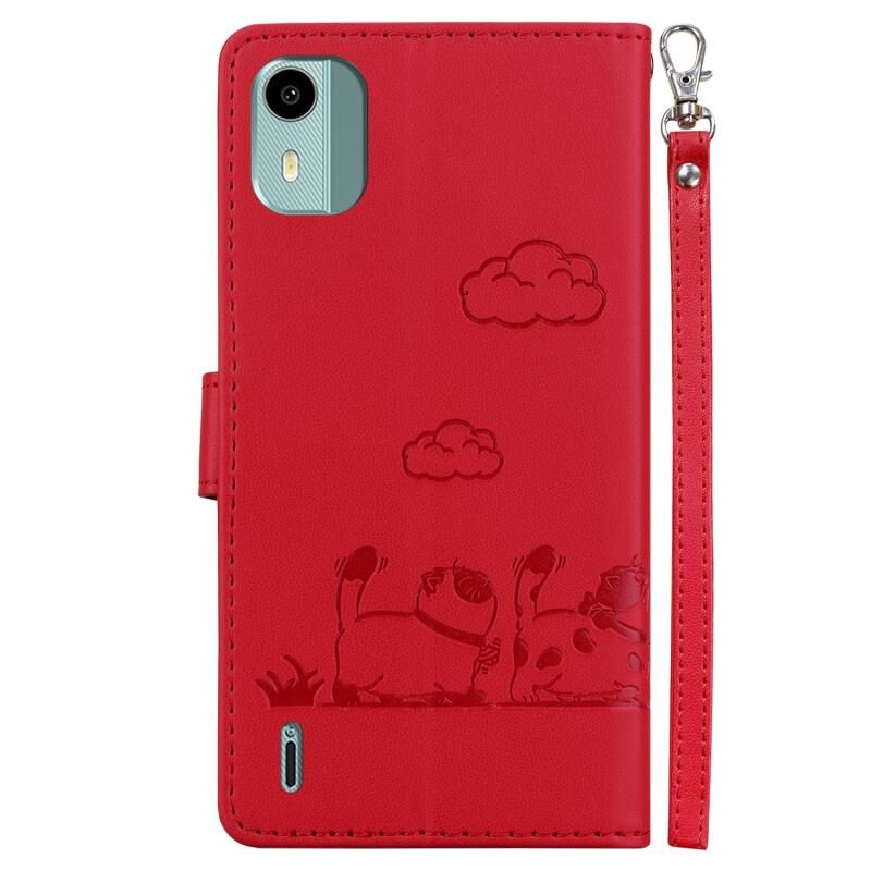 Θήκη τηλεφώνου από δέρμα RFID για Nokia C12, χαριτωμένες γάτες (Πράσινο)