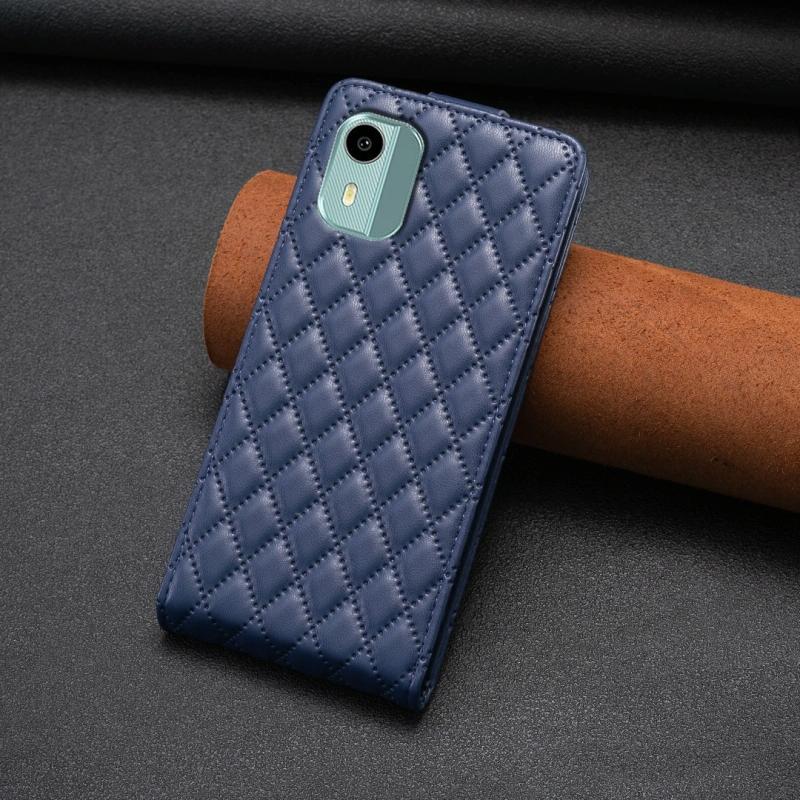 Θήκη Δερμάτινη Flip με Διαμαντένιο Πλέγμα για Nokia C12 (Μπλε)
