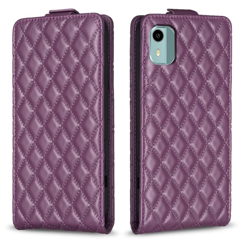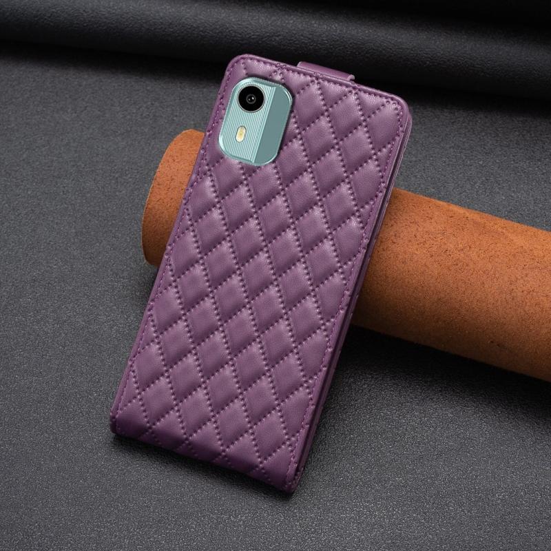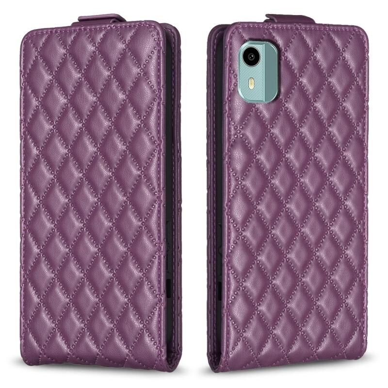 Θήκη Δερμάτινη Flip με Διαμαντένιο Πλέγμα για Nokia C12 (Σκούρο Μωβ)