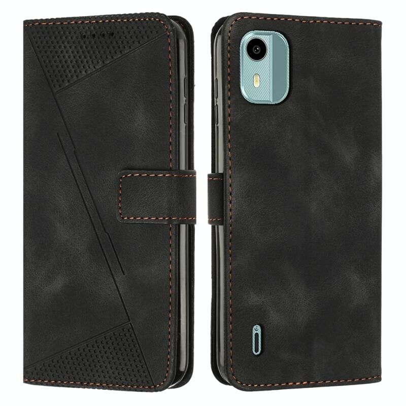 Για Nokia C12 Dream Triangle Δερμάτινη θήκη τηλεφώνου με κορδόνι (Μαύρο)