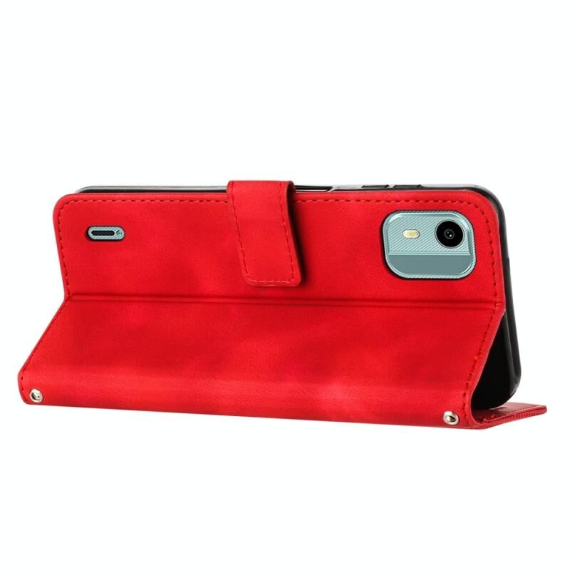 Για Nokia C12 Dream Triangle Δερμάτινη θήκη τηλεφώνου με κορδόνι (κόκκινο)