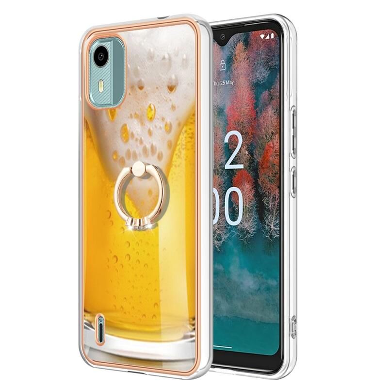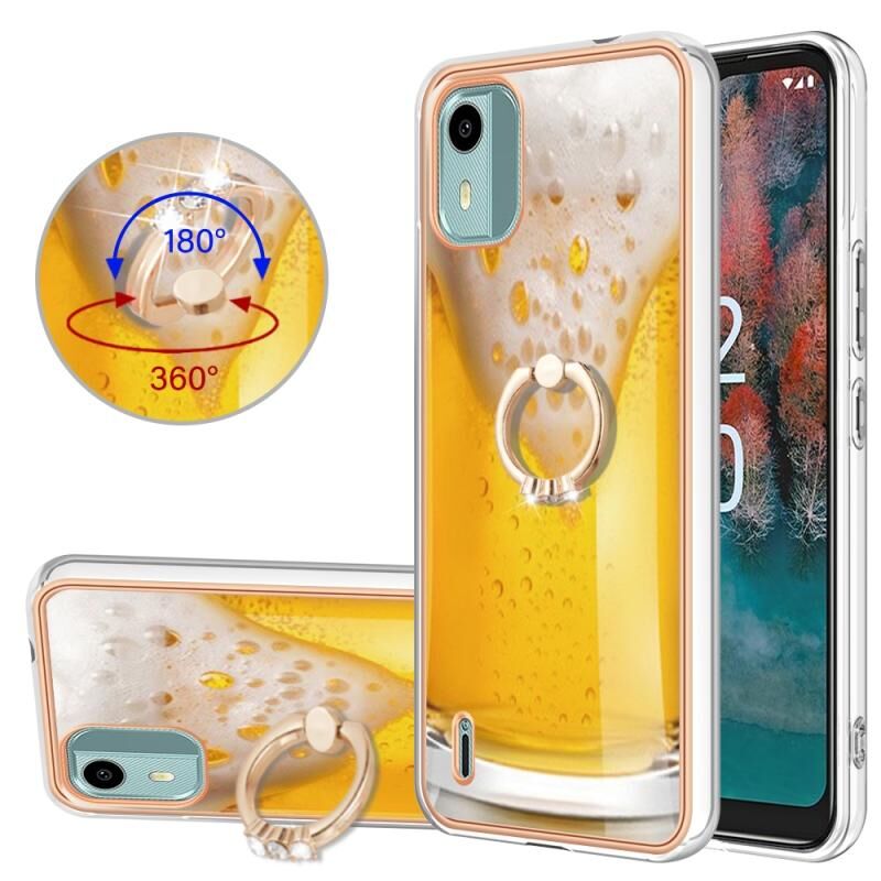 Θήκη τηλεφώνου για Nokia C12 με ηλεκτρολυτική επιμετάλλωση, διπλής όψης IMD με δακτύλιο στήριξης (Μπύρα βαρελίσια)