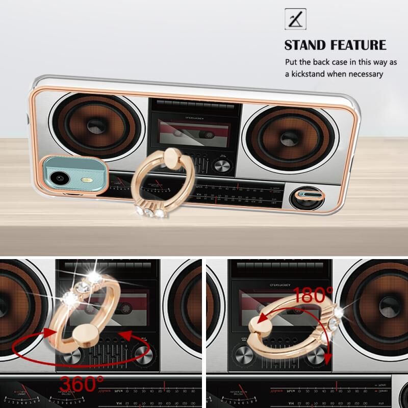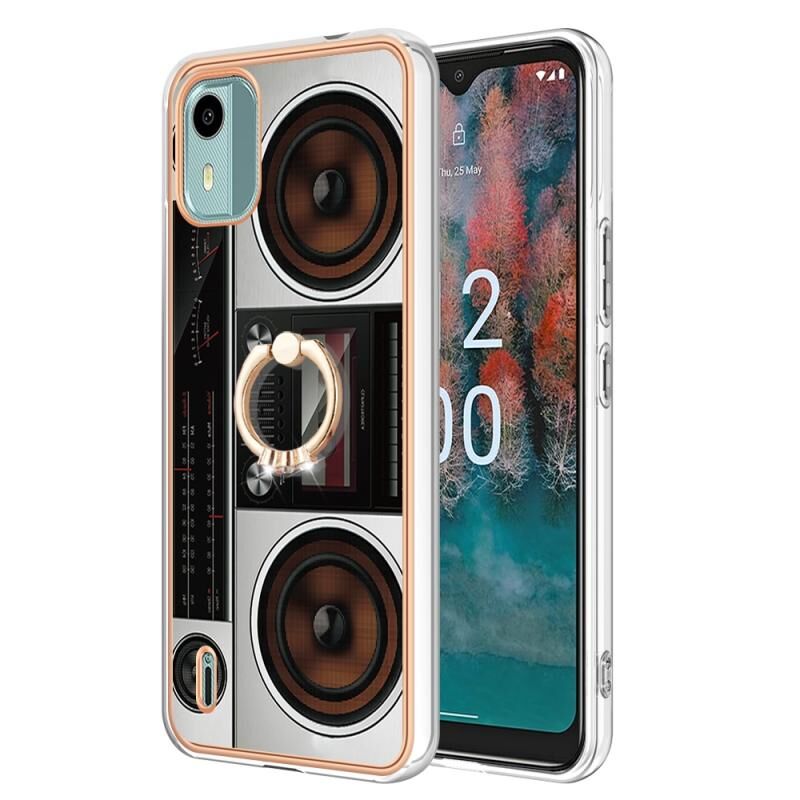 Θήκη τηλεφώνου για Nokia C12 με ηλεκτρολυτική επιμετάλλωση, διπλής όψης IMD με δακτύλιο στήριξης (Ρετρό Ραδιόφωνο)