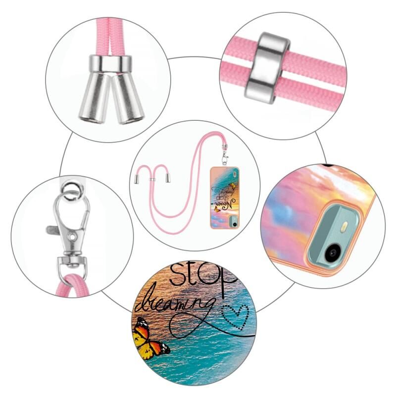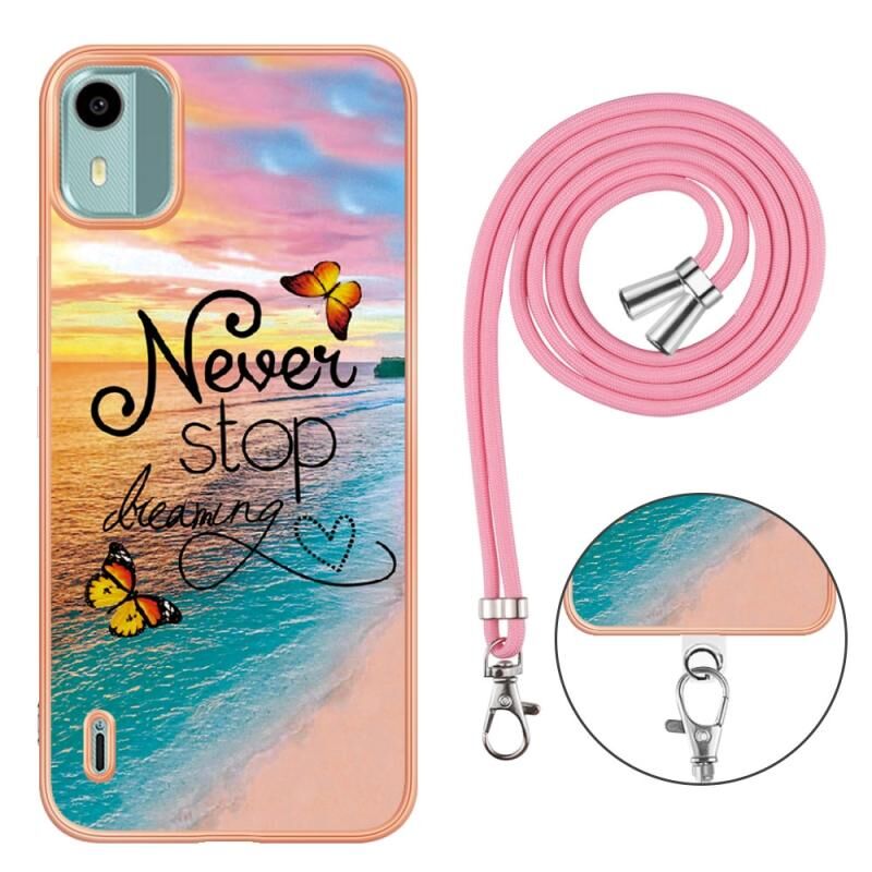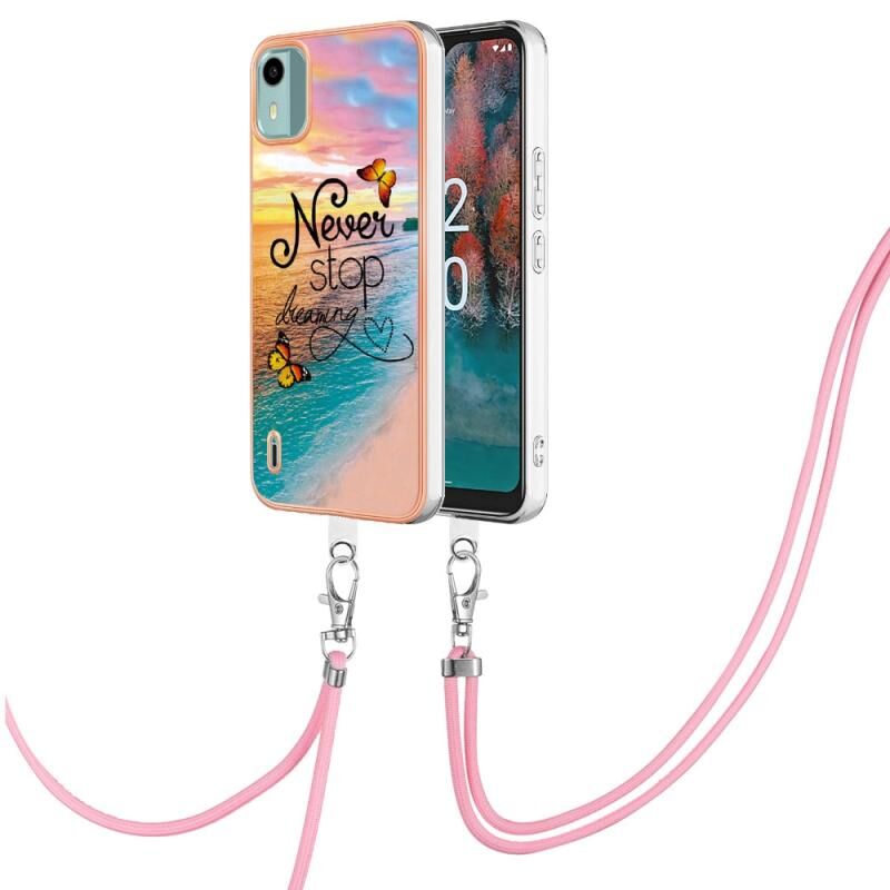Θήκη κινητού τηλεφώνου Nokia C12 Επιμετάλλωση IMD TPU με κορδόνι (Όνειρο Πεταλούδας)