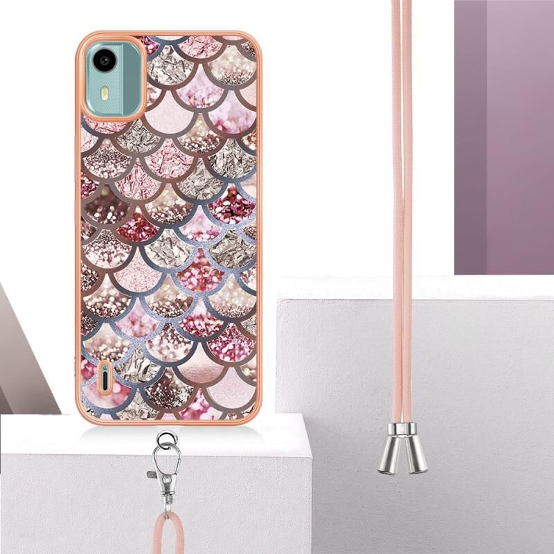 Θήκη τηλεφώνου Nokia C12 Επιμετάλλωση IMD TPU με κορδόνι (Ροζ Λέπια)