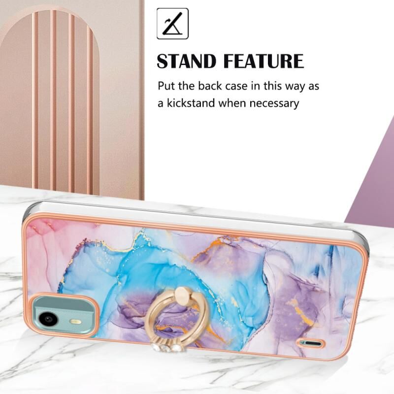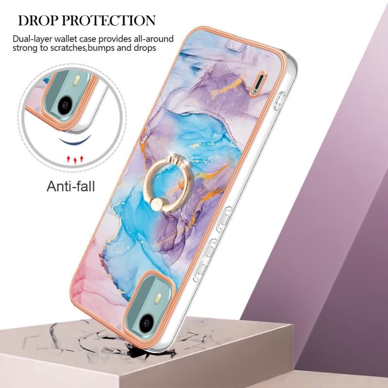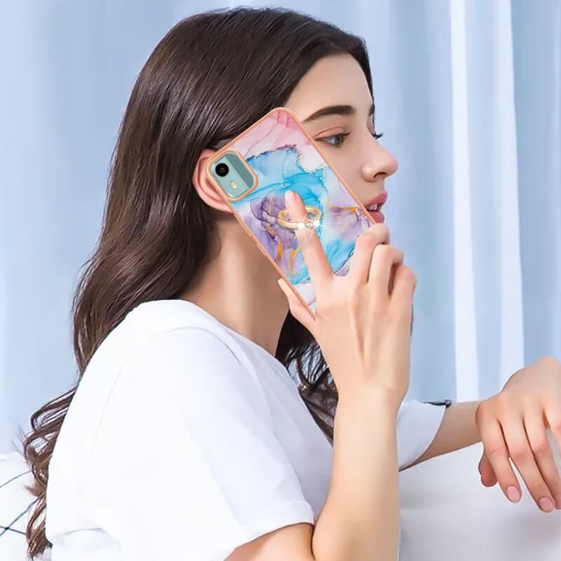 Θήκη κινητού τηλεφώνου Nokia C12 Επιμετάλλωση IMD TPU με Δαχτυλίδι (Λευκό Μάρμαρο)