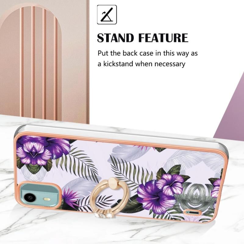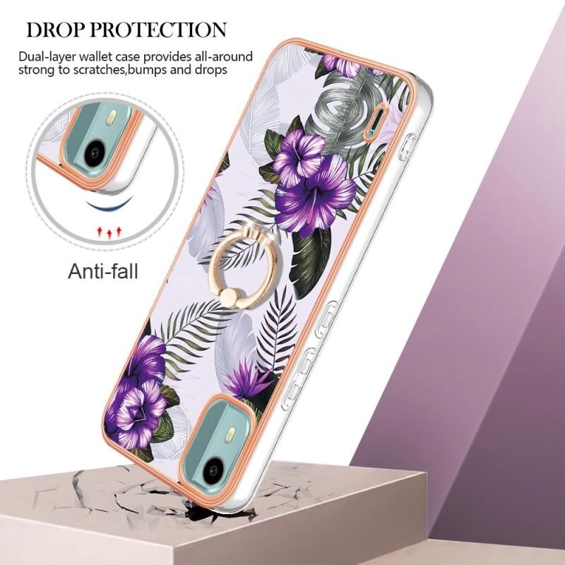 Θήκη κινητού τηλεφώνου Nokia C12 Επιμετάλλωση IMD TPU με Δαχτυλίδι (Λευκό Μάρμαρο)