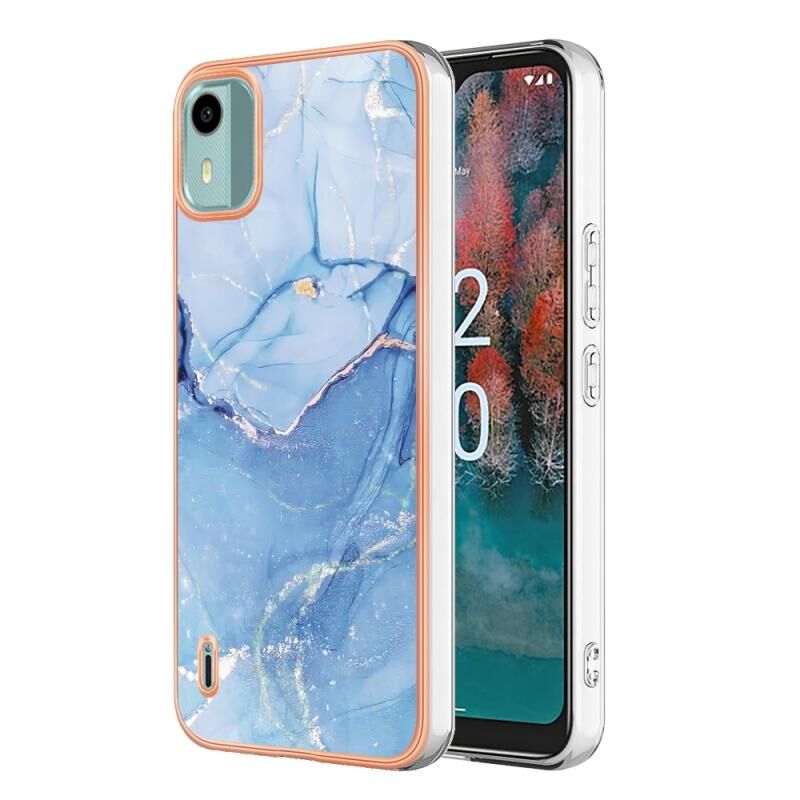 Θήκη τηλεφώνου για Nokia C12 Επιμετάλλωση Μαρμάρου Διπλής Όψης IMD (Μωβ 016)
