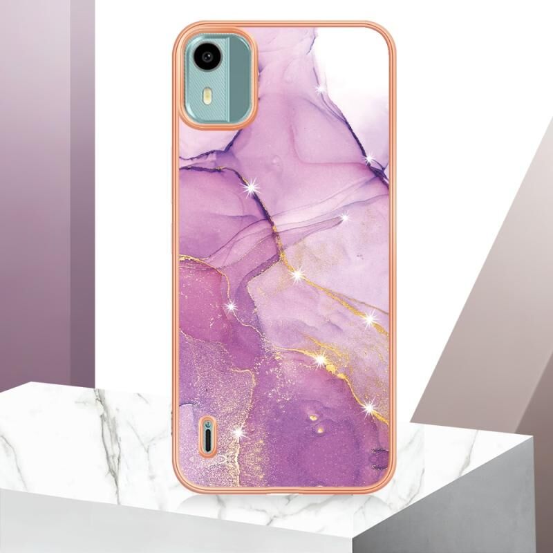 Θήκη τηλεφώνου για Nokia C12 Επιμετάλλωση Μαρμάρου Διπλής Όψης IMD (Λευκό 006)
