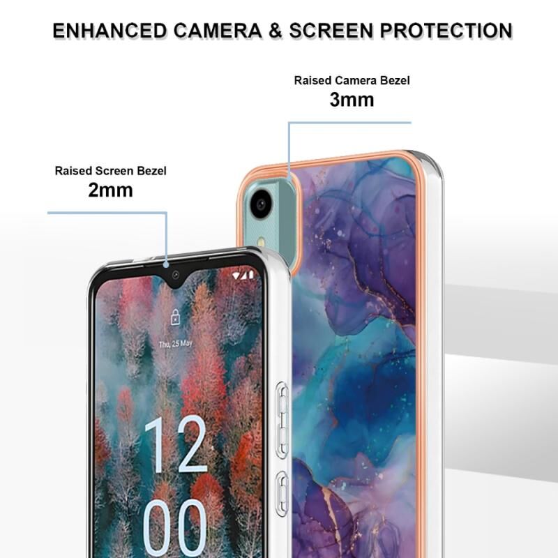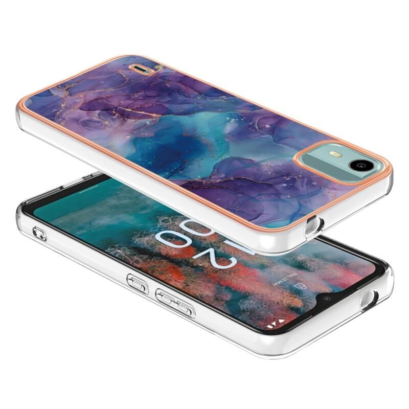 Θήκη τηλεφώνου για Nokia C12 Επιμετάλλωση Μαρμάρου Διπλής Όψης IMD (Μωβ 016)