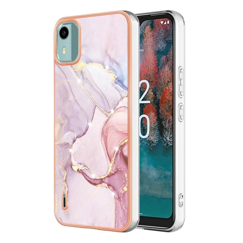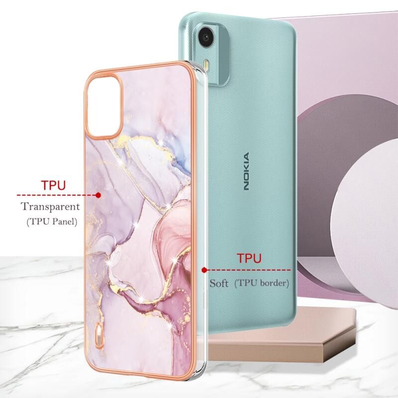 Θήκη τηλεφώνου για Nokia C12 Επιμετάλλωση Μαρμάρου Διπλής Όψης IMD (Λευκό 006)