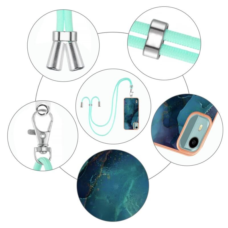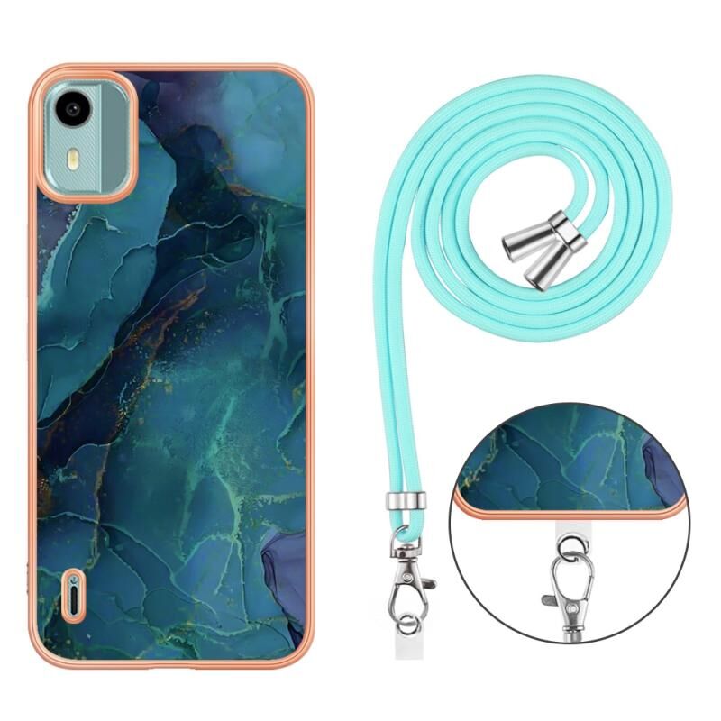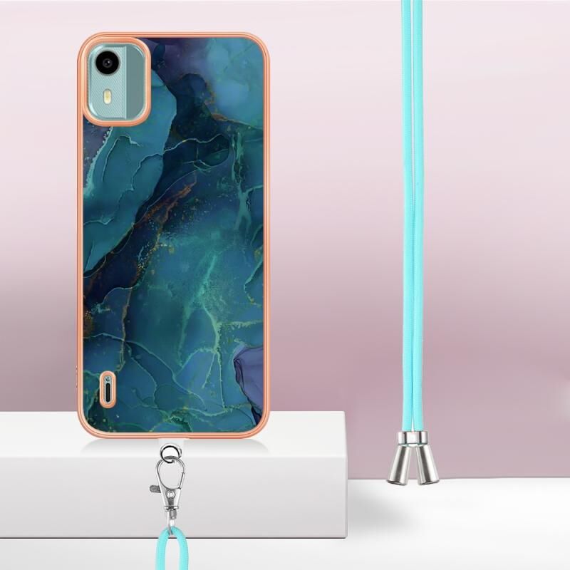 Θήκη τηλεφώνου για Nokia C12 με ηλεκτρολυτική επίστρωση, σχέδιο μάρμαρου, διπλής όψης IMD με κορδόνι (Χρυσό Ρόδι 015)