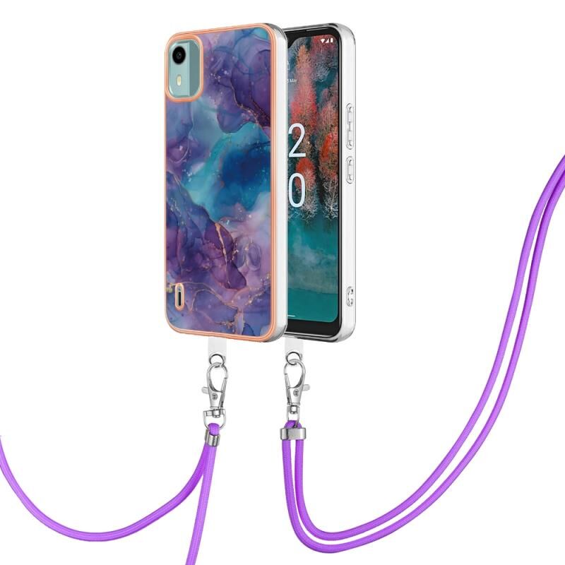 Θήκη τηλεφώνου για Nokia C12 με ηλεκτρολυτική επίστρωση, σχέδιο μάρμαρου, διπλής όψης IMD με κορδόνι (Χρυσό Ρόδι 015)