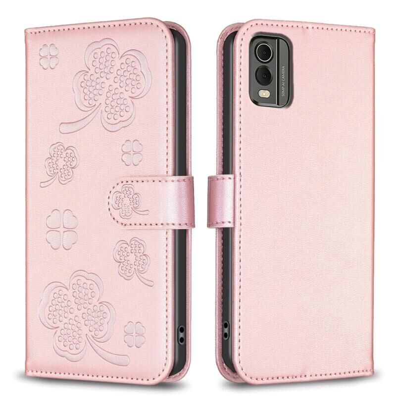 Για Nokia C12 τετράφυλλο ανάγλυφη δερμάτινη θήκη τηλεφώνου (ροζ)