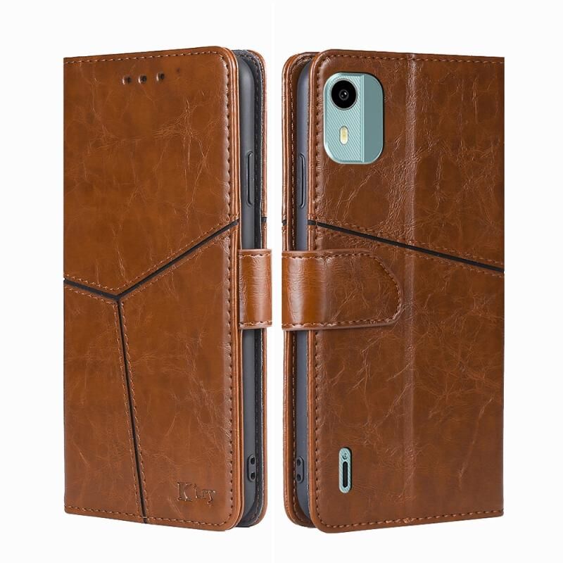 Για Nokia C12 Γεωμετρική ραφή δερμάτινη θήκη τηλεφώνου (ανοιχτό καφέ)