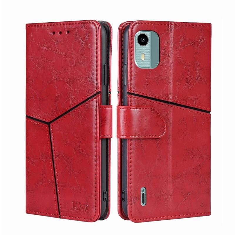 Για Nokia C12 Γεωμετρική ραφή δερμάτινη θήκη τηλεφώνου (κόκκινο)