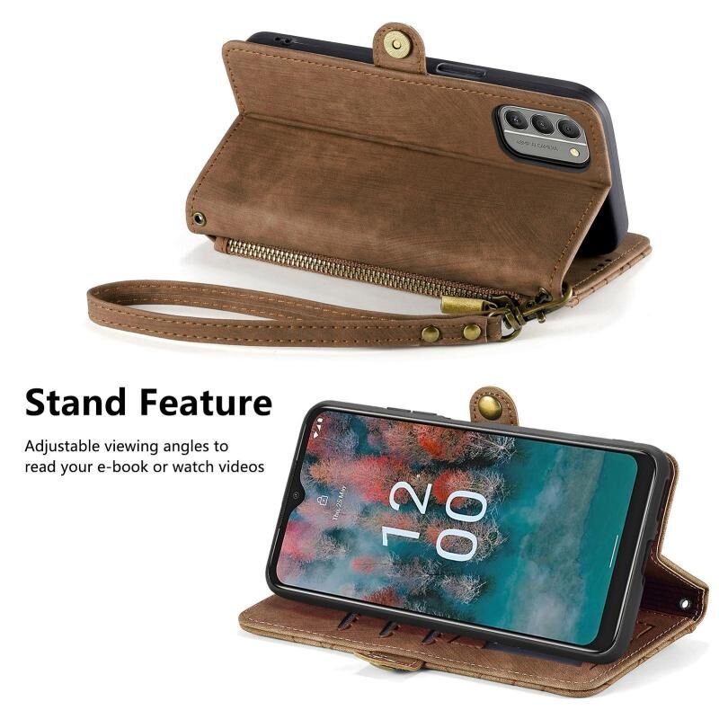 Για Nokia C12 γεωμετρική φερμουάρ πορτοφόλι πλευρά πόρπη δερμάτινη θήκη τηλεφώνου (καφέ)