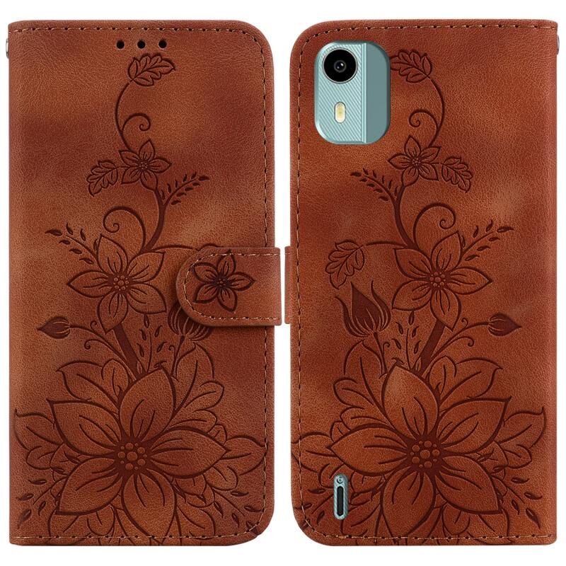 Για Nokia C12 Lily ανάγλυφη δερμάτινη θήκη τηλεφώνου (καφέ)