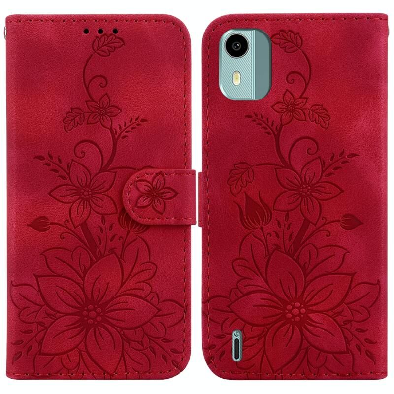Για Nokia C12 Lily ανάγλυφη δερμάτινη θήκη τηλεφώνου (κόκκινο)