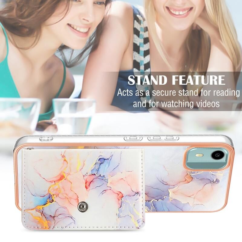 Θήκη κινητού τηλεφώνου Nokia C12 με σχέδιο μαρμάρου IMD και θήκη κάρτας (Λευκό Γαλαξιακό Μάρμαρο)